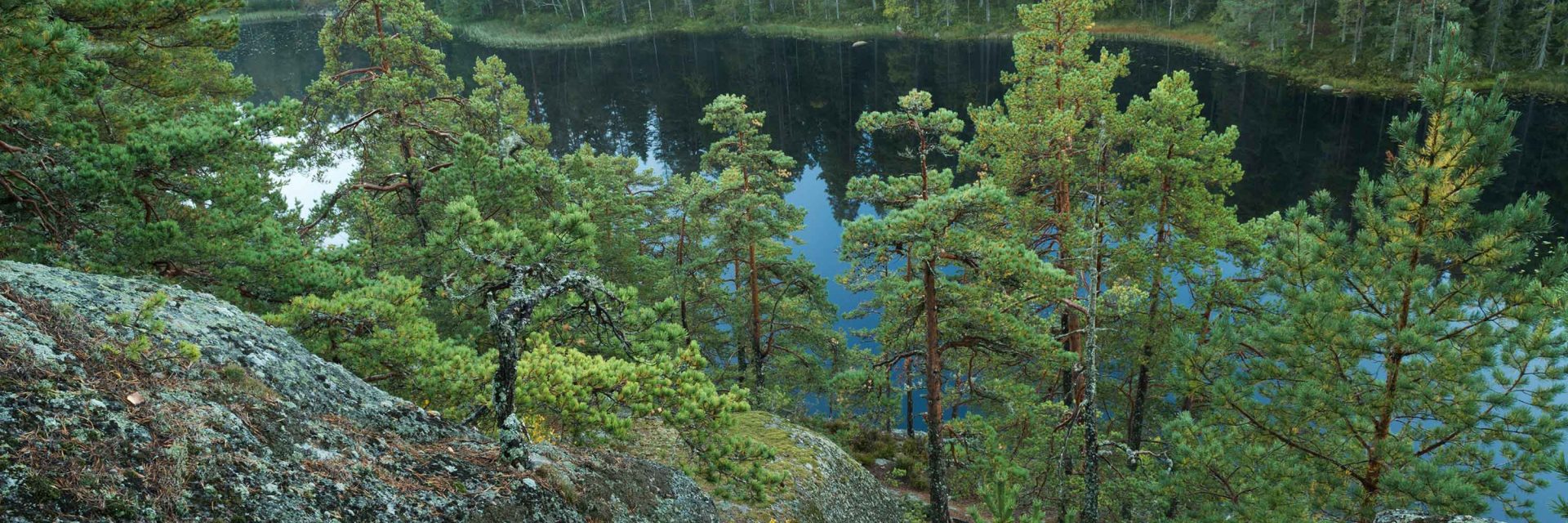 Tiveden is situated on granite bedrock. When the earth´s crust imploded 900-1,400 million years ago, forming the huge basin that is now Lake Vättern the bedrock of Tiveden was also shattered to form the crisscross pattern now typical of the park´s landscape. Lakes and bogs have formed in the lowland areas between the remnants of shattered bedrock. Dotted around the park are steep rocky summits where the bedrock has remained intact.
